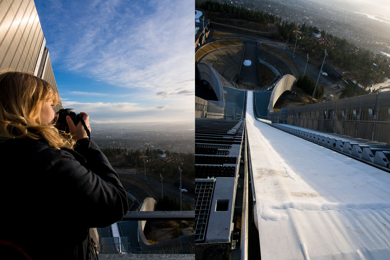 På söndagen åkte vi upp till Holmenkollen för att besöka hopptornet. Himla kul, för jag hade inte varit där uppe innan.