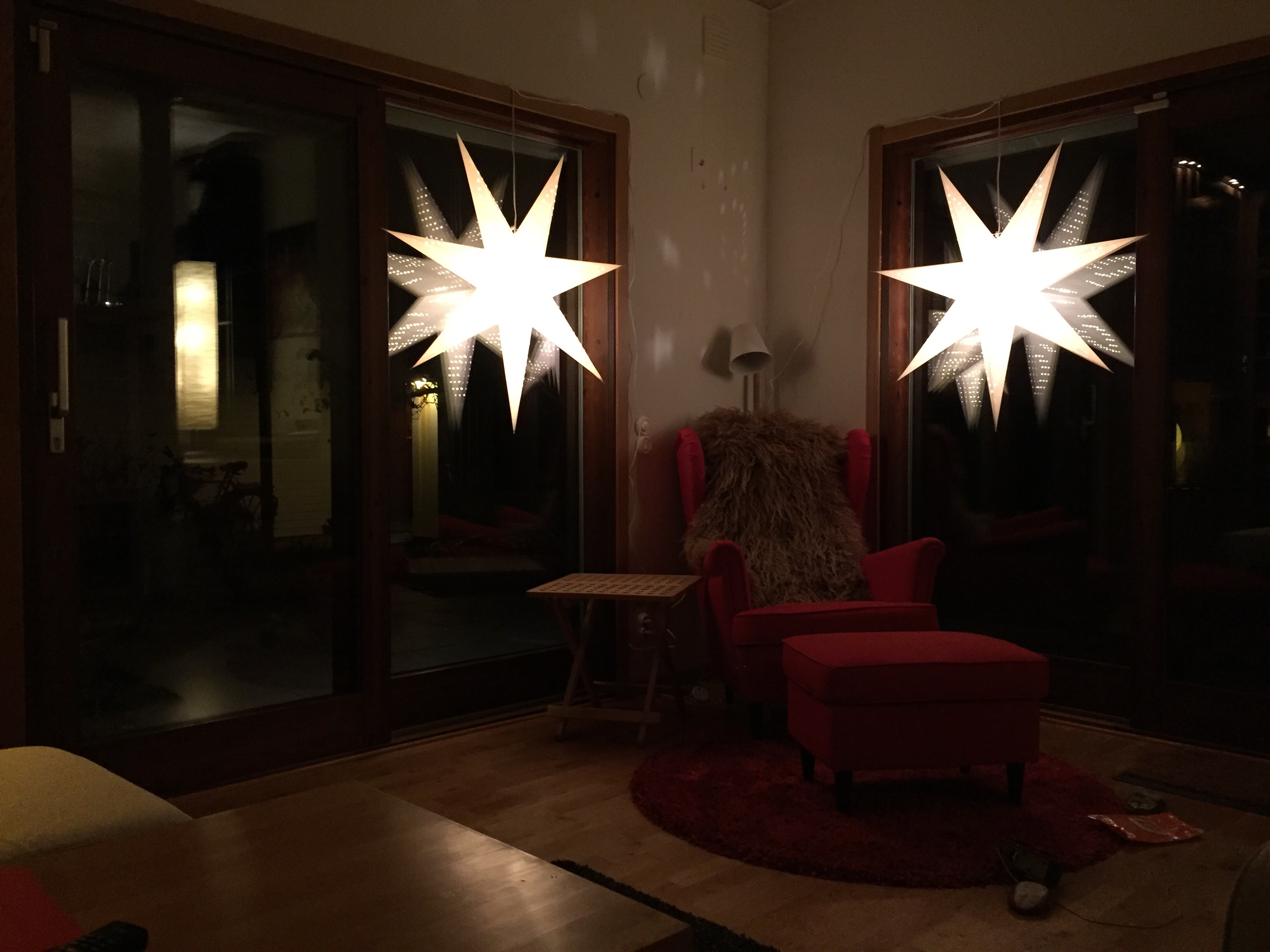 På söndagen åkte vi runt och handlade saker vi behövde till det nya huset (tvättförvarig osv). Vi fick även tag på två stora och fina adventsstjärnor som nu hänger i vardagsrummet, väldigt mysigt.