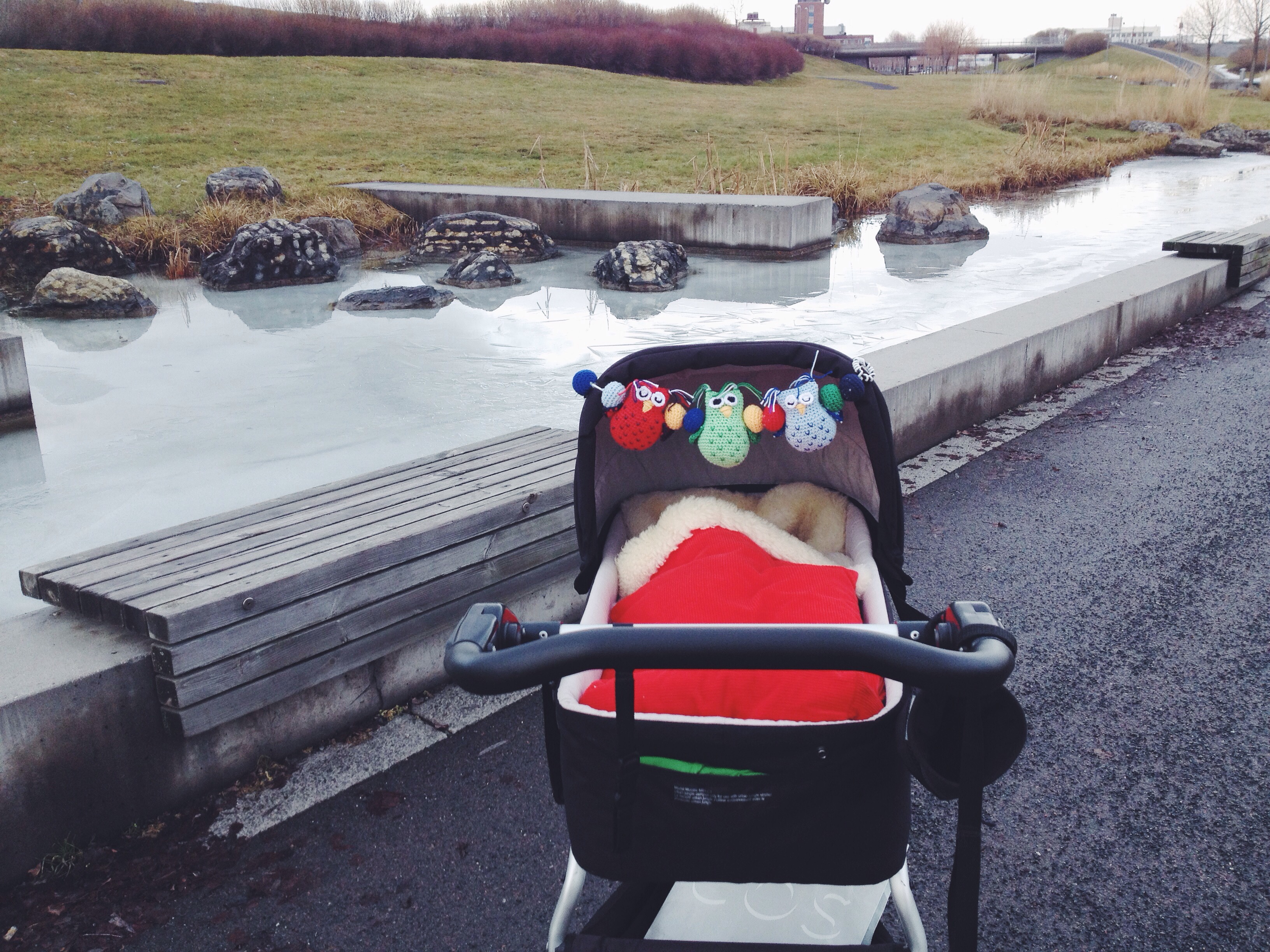 Medan vi smälte maten i soffan så lånade Ilse Elnas dockvagn och paraply och gick varv efter varv runt murstocken… Kan ju va värt att nämna att David har gått en hel del med paraply när han kört Ilse i vagnen till förskolan det senaste så detta var ju rätt gulligt!