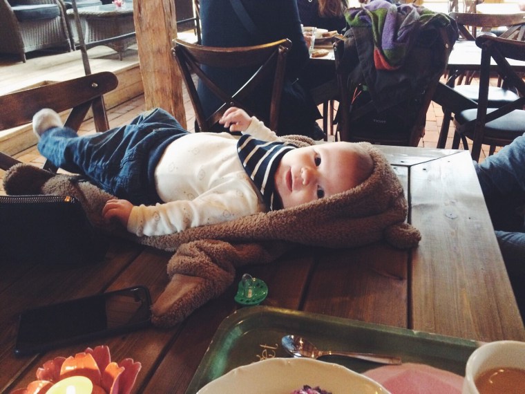 Medan vi åt låg hon så snällt på bordet, sparkade med benen och tog all fokus.