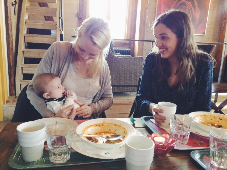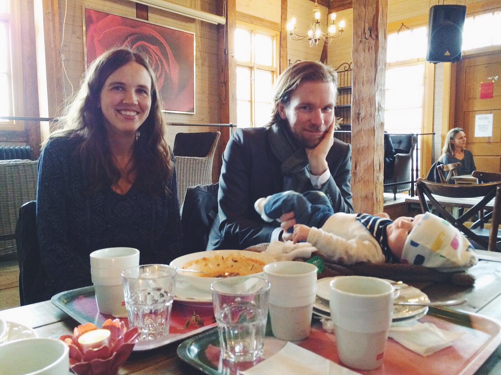 Igår lämnade vi mina föräldrar och åkte till Göteborg och träffade några kompisar. Så himla kul att hinna se dem och få prata ikapp sig lite och visa upp Ilse såklart, här tryggt i Kims famn.