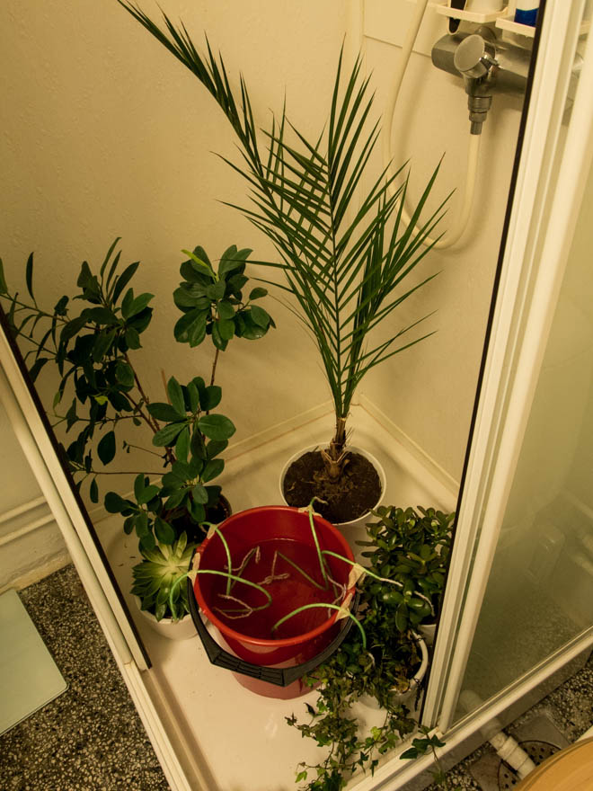 Sen innan har vi de här tjockbladiga växterna stående i fönstret tillsammans med en bambukvist.