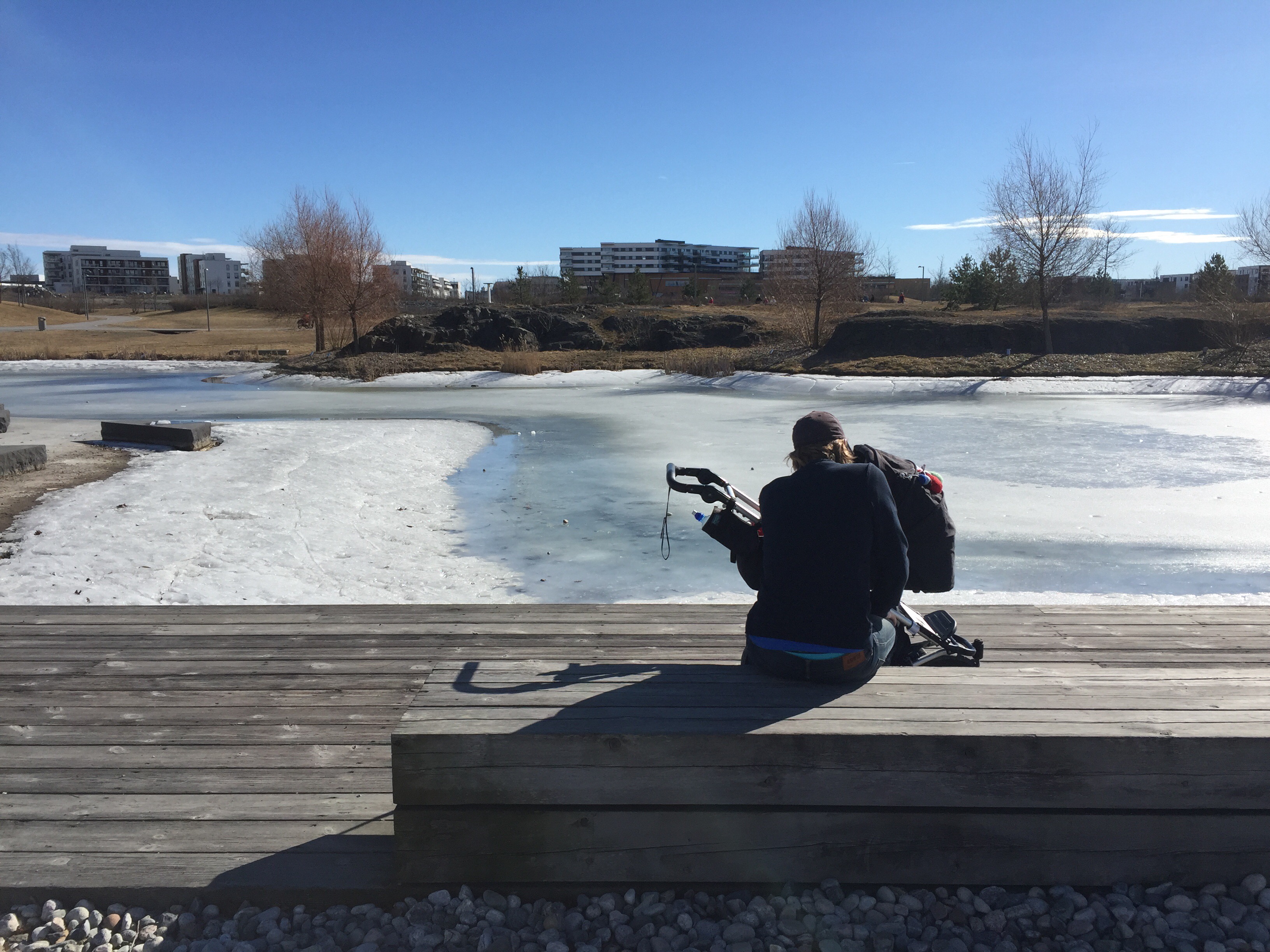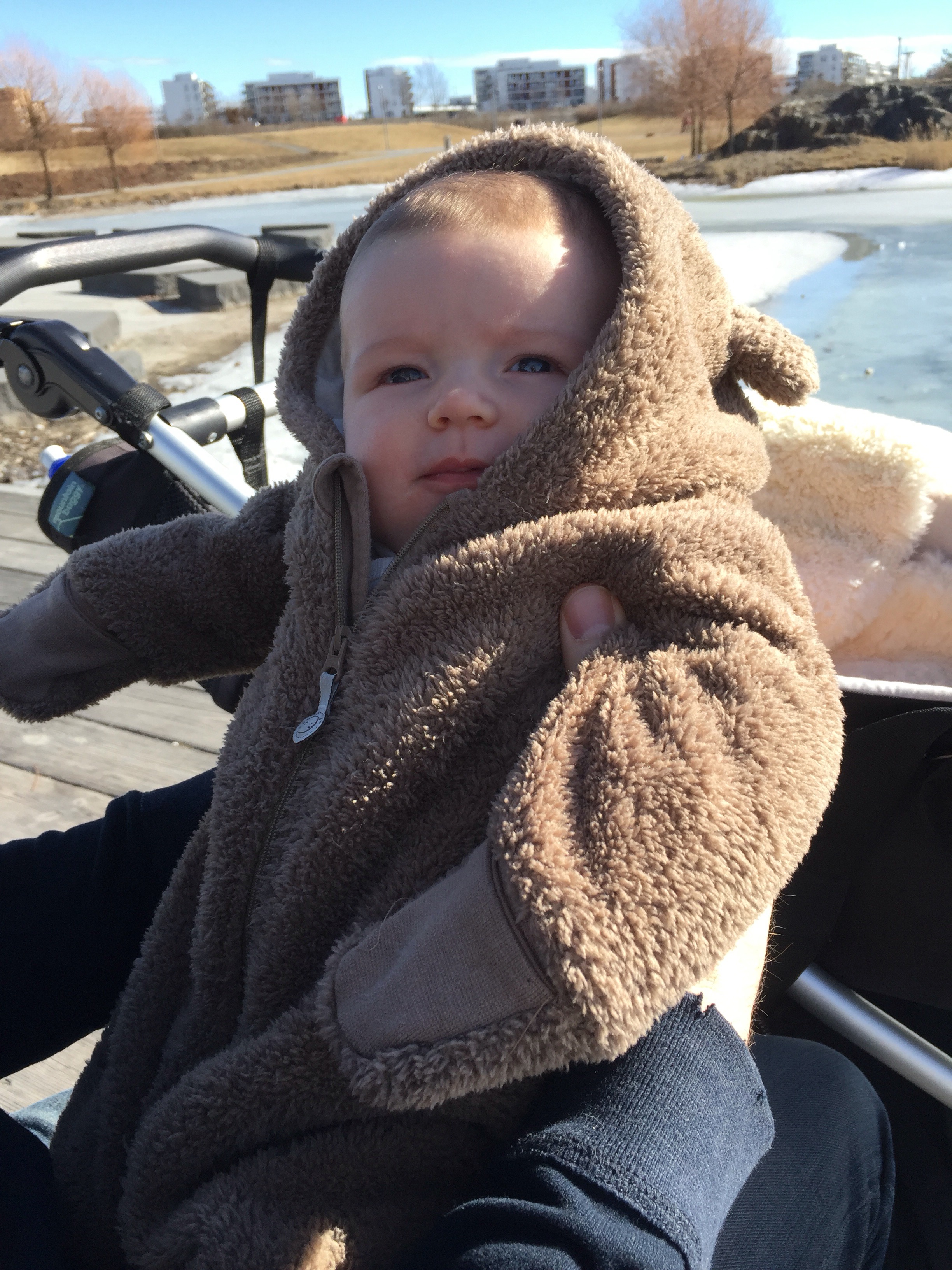 Igår kom Emanuel på besök och fick träffa Ilse för första gången. Efter att han åkt vidare mot flygplatsen idag för att åka till alperna så tog jag och Ilse en promanad i vårsolen. För det kändes verkligen så, som vår fast det fortfarande är februari. Det är verkligen så himla härligt ute nu med en frusen Oslofjord, lite snö men nästan snöfria gångvägar. En sol som värmer men härligt krispig luft. Och det bästa är att jag inte bara kan njuta av detta på helgerna utan även på veckorna, en av fördelarna med att vara mammaledig och inte behöva sitta instängd på ett kontor.