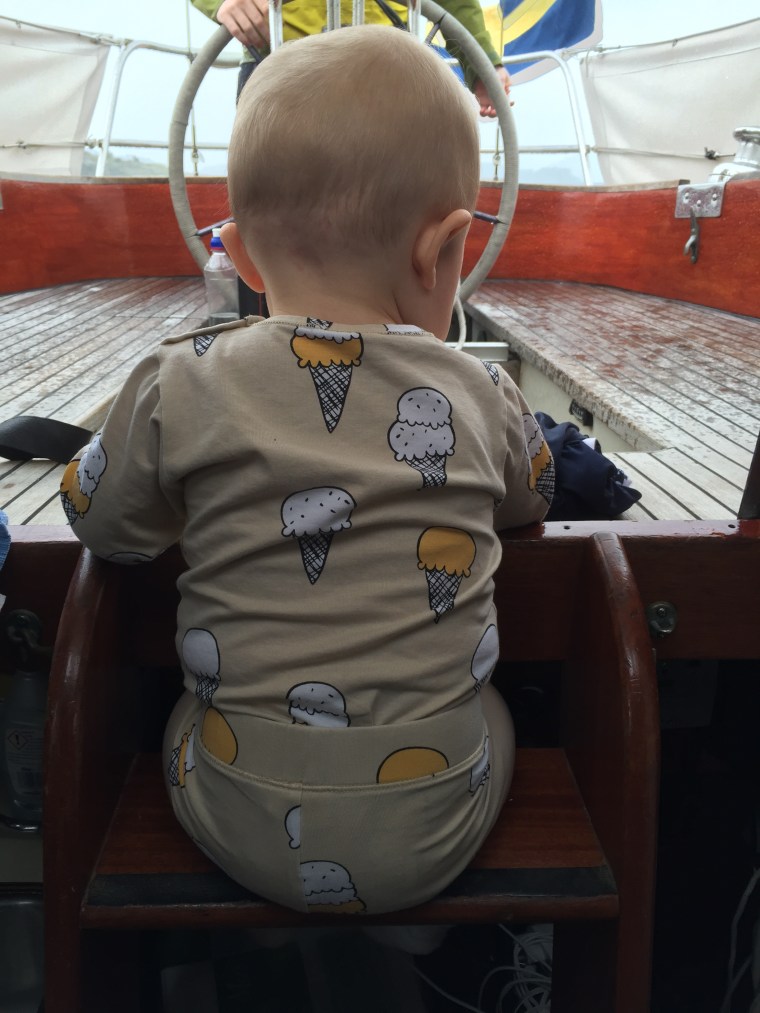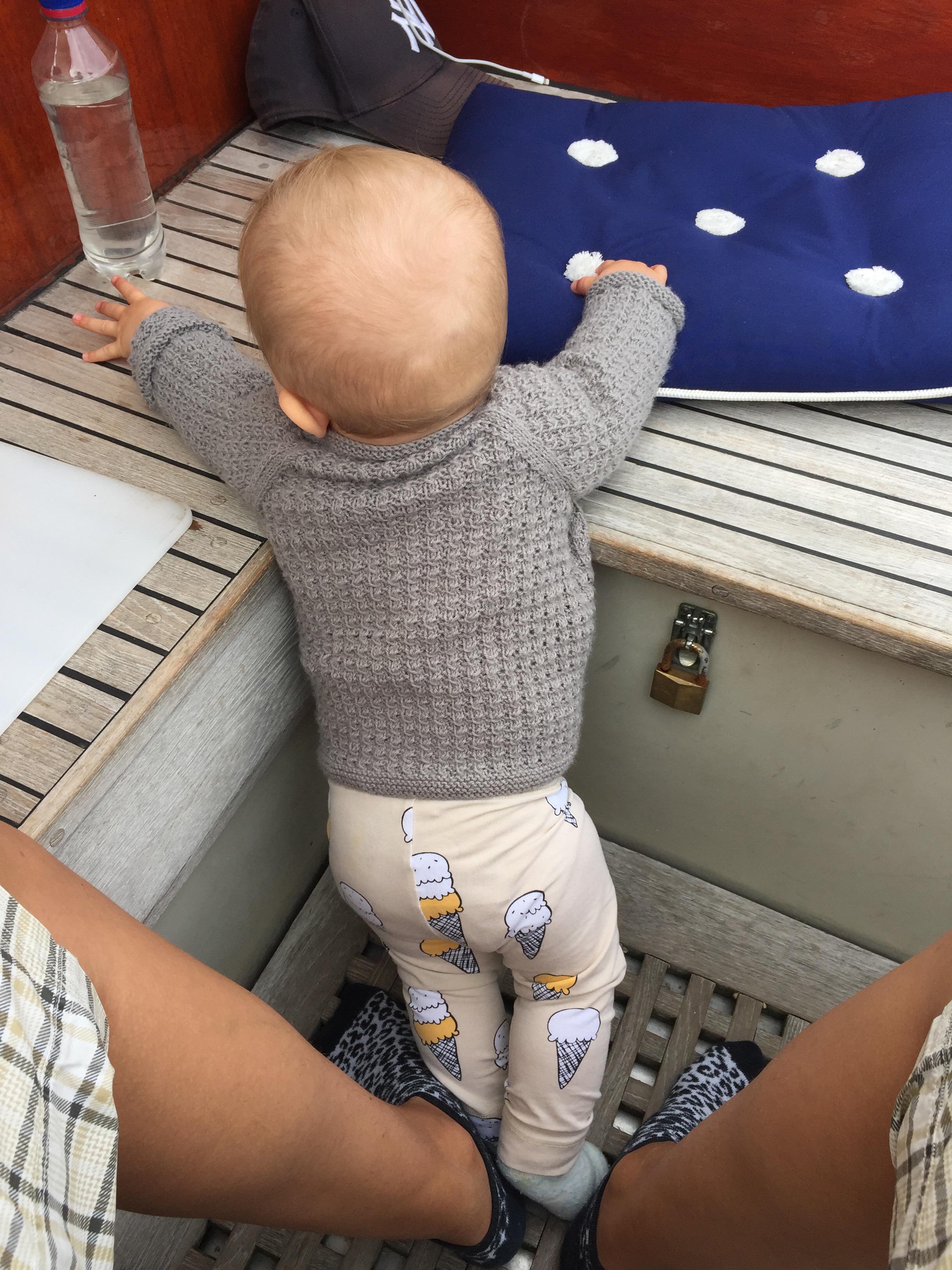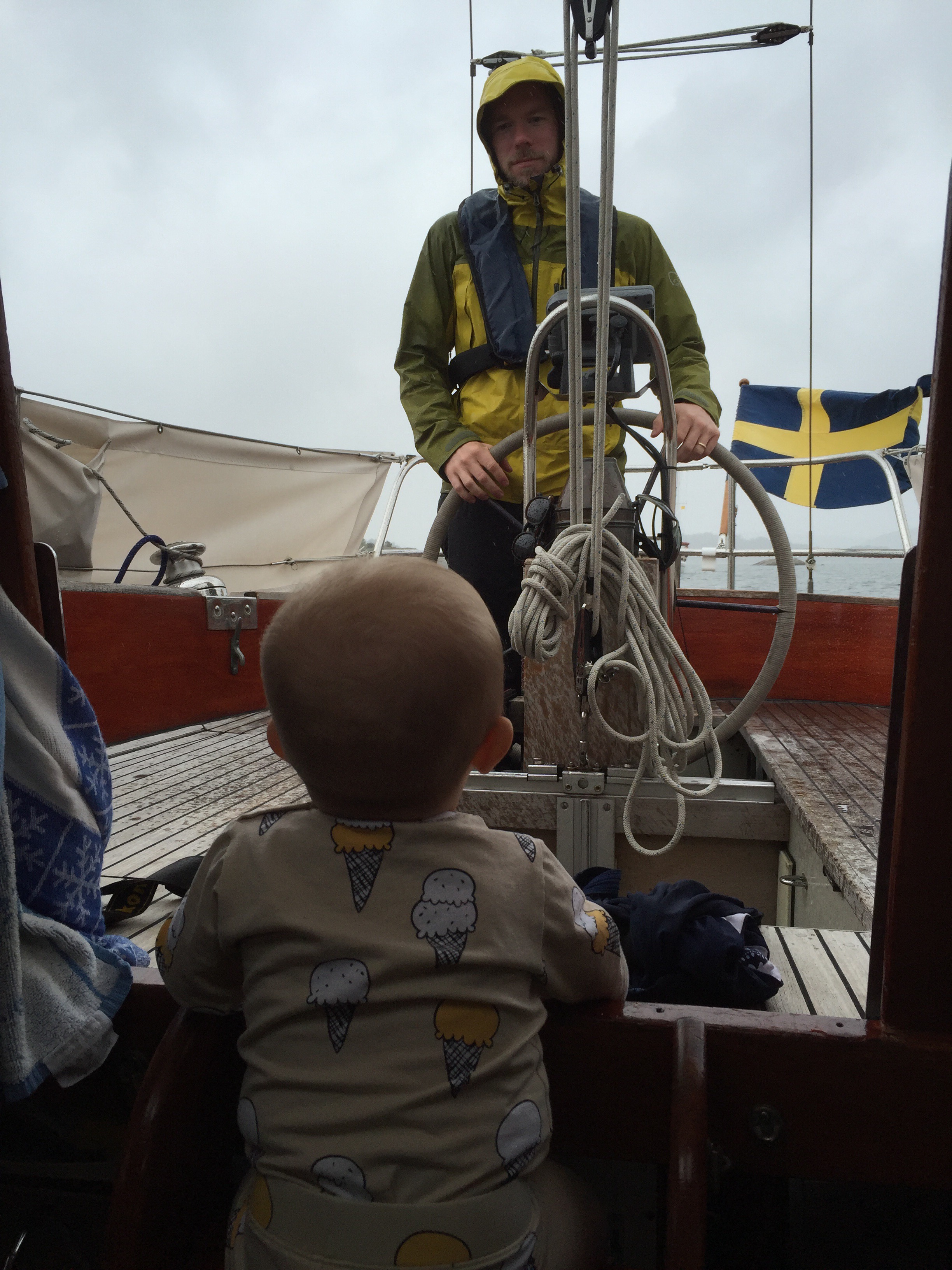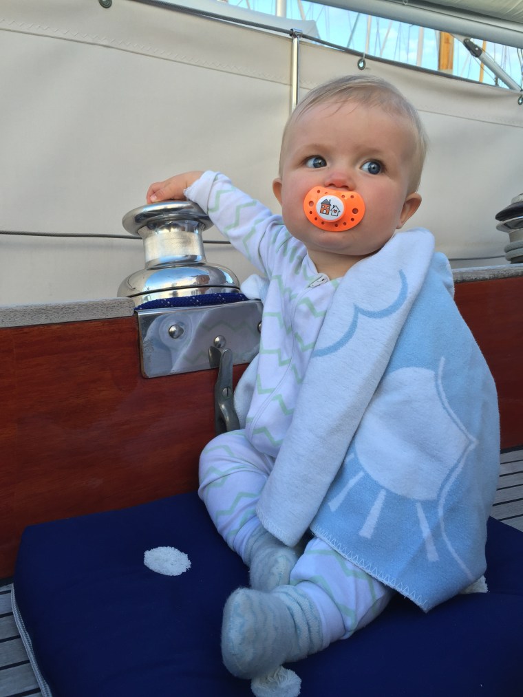 Vår lilla tjej som trivdes galant på båten, hon har nog aldrig sovit så bra. Hon börjar även bli så stor ju, se bara! Jag behöver ju knappt hålla i henne.