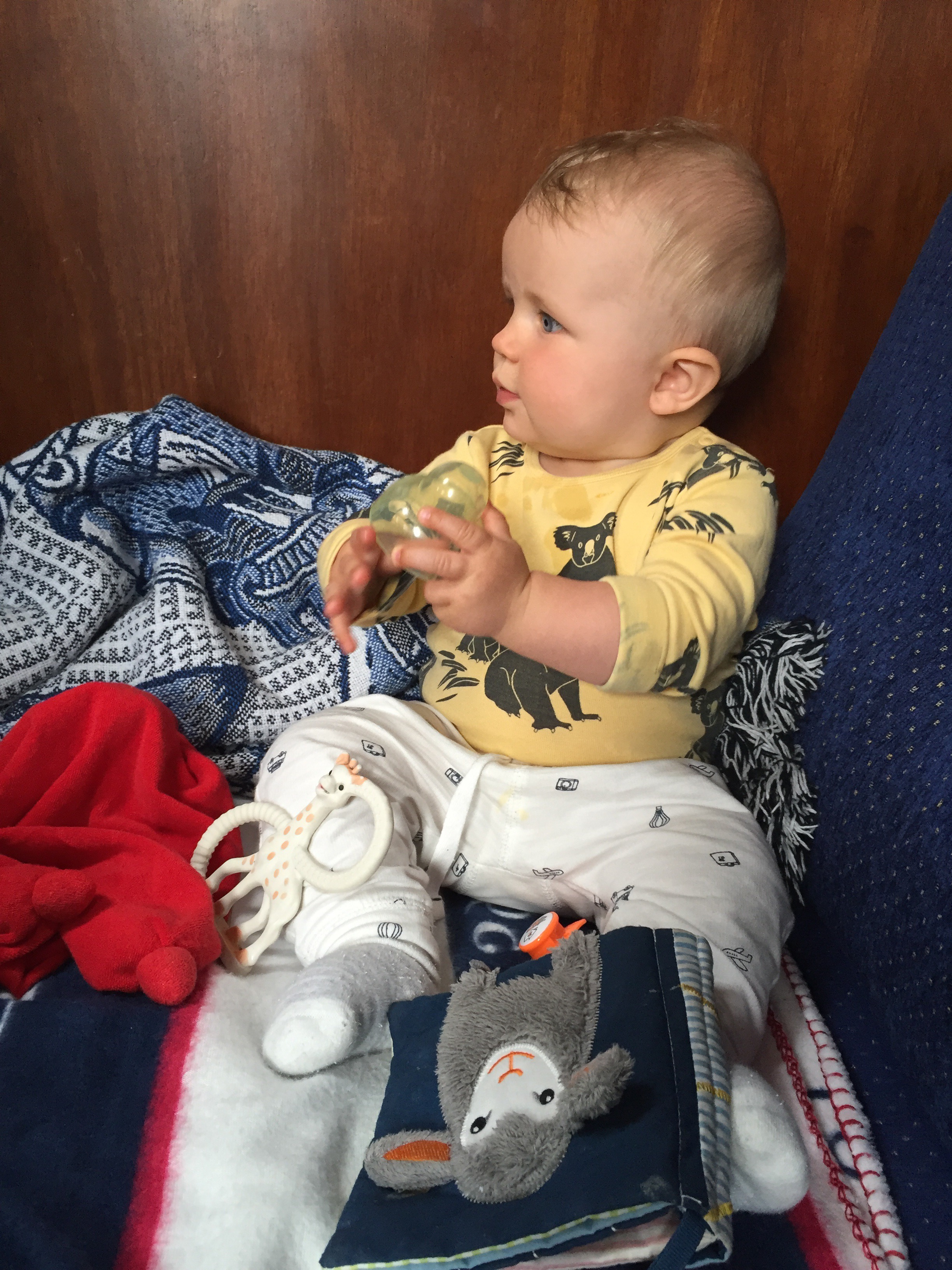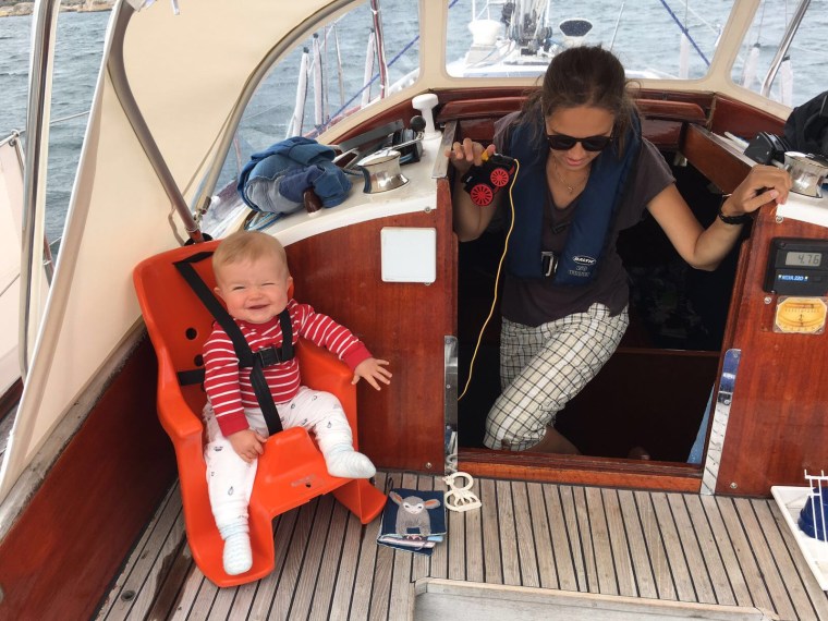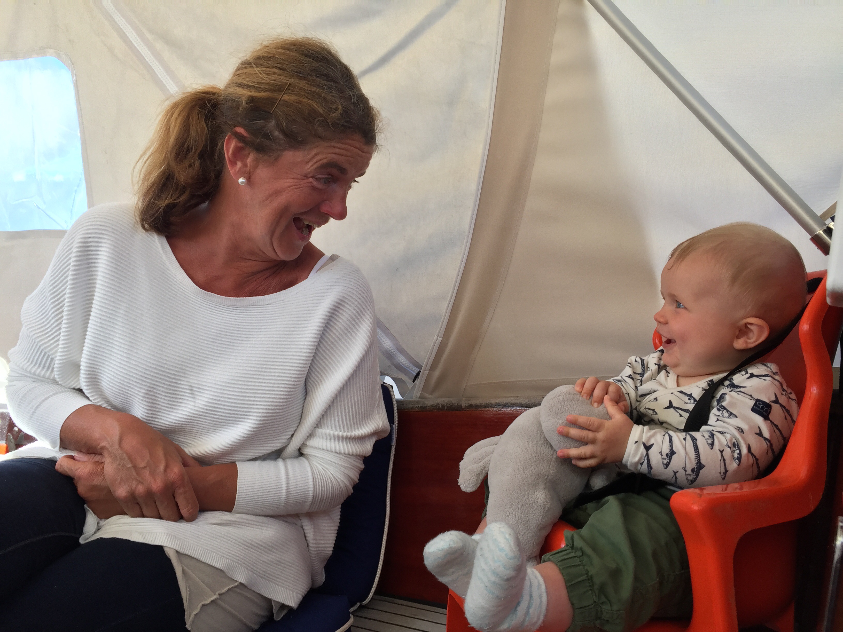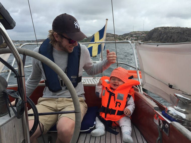 Vår lilla tjej som trivdes galant på båten, hon har nog aldrig sovit så bra. Hon börjar även bli så stor ju, se bara! Jag behöver ju knappt hålla i henne.