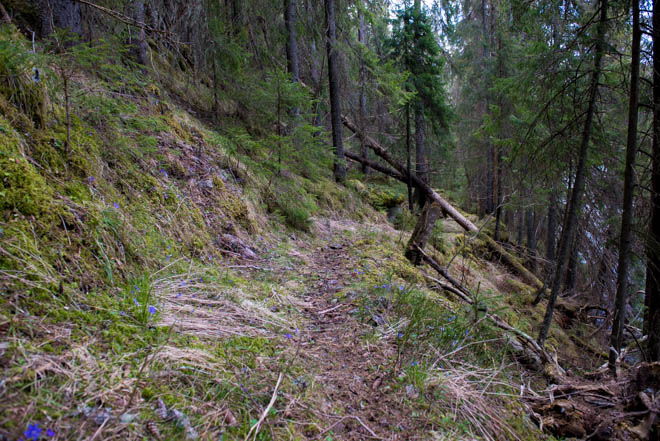 Då leden vi följde sluttade konstant nedför var det väldigt skönt att ha ett par stavar att använda med jämna mellanrum så knäna slapp ta all belastning.